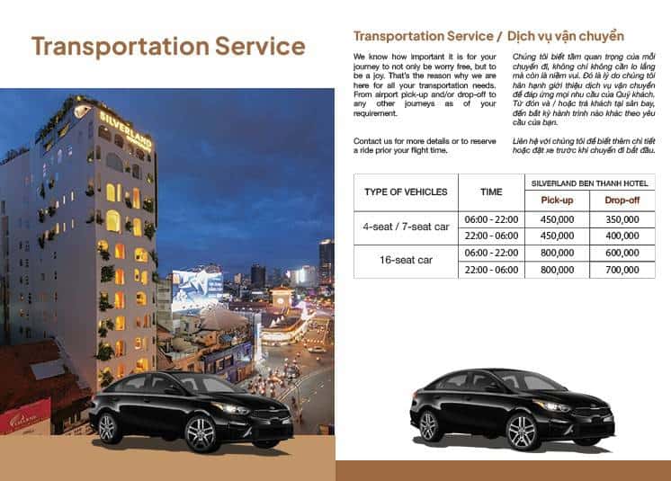 The hotel offers free airport pick-up/drop-off for guests staying from 2 nights or more when booking directly via our website silverlandhotels.com.